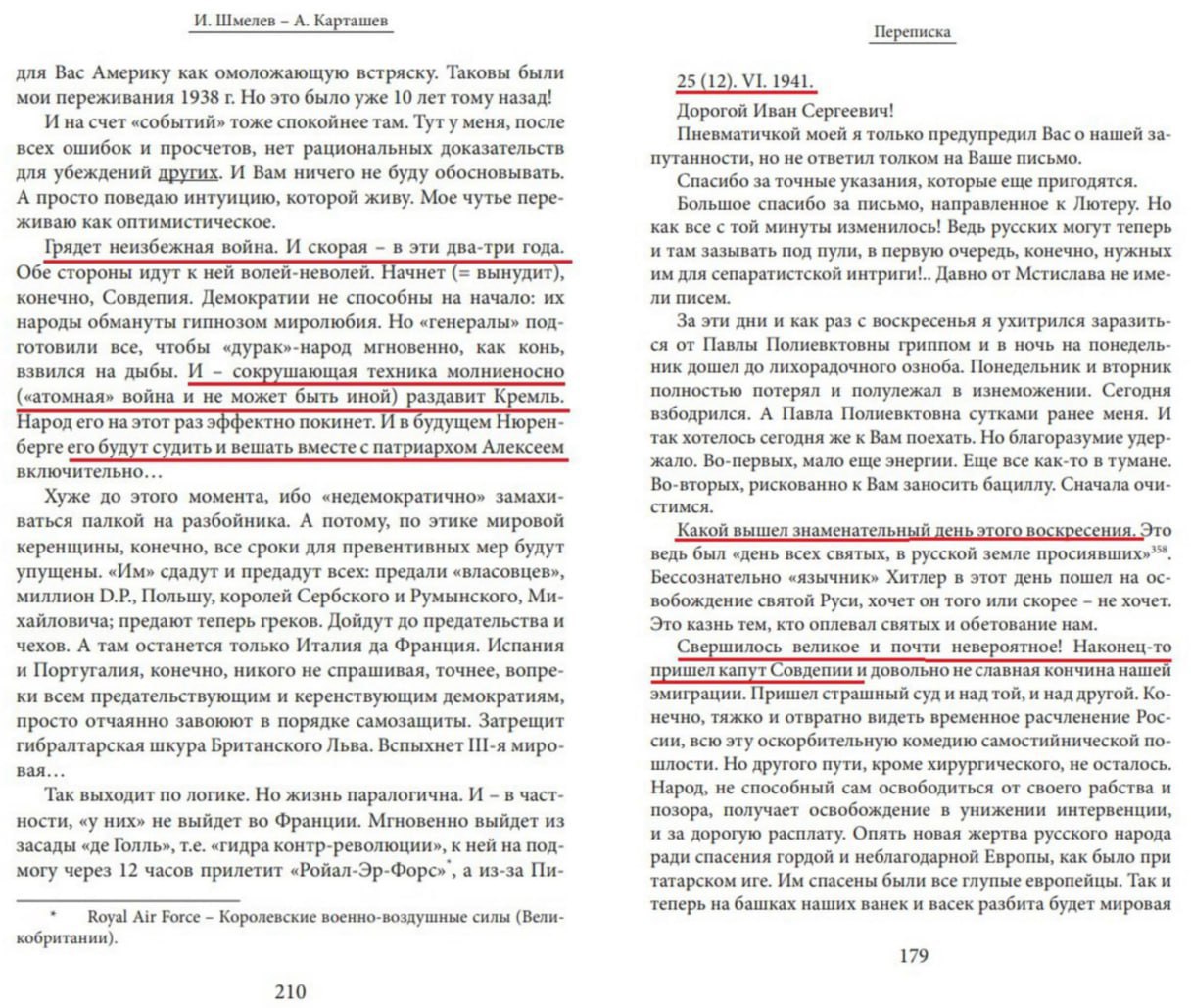 Карташёв в письме Ивану Шмелёву 25 июня 1941 года сообщал: