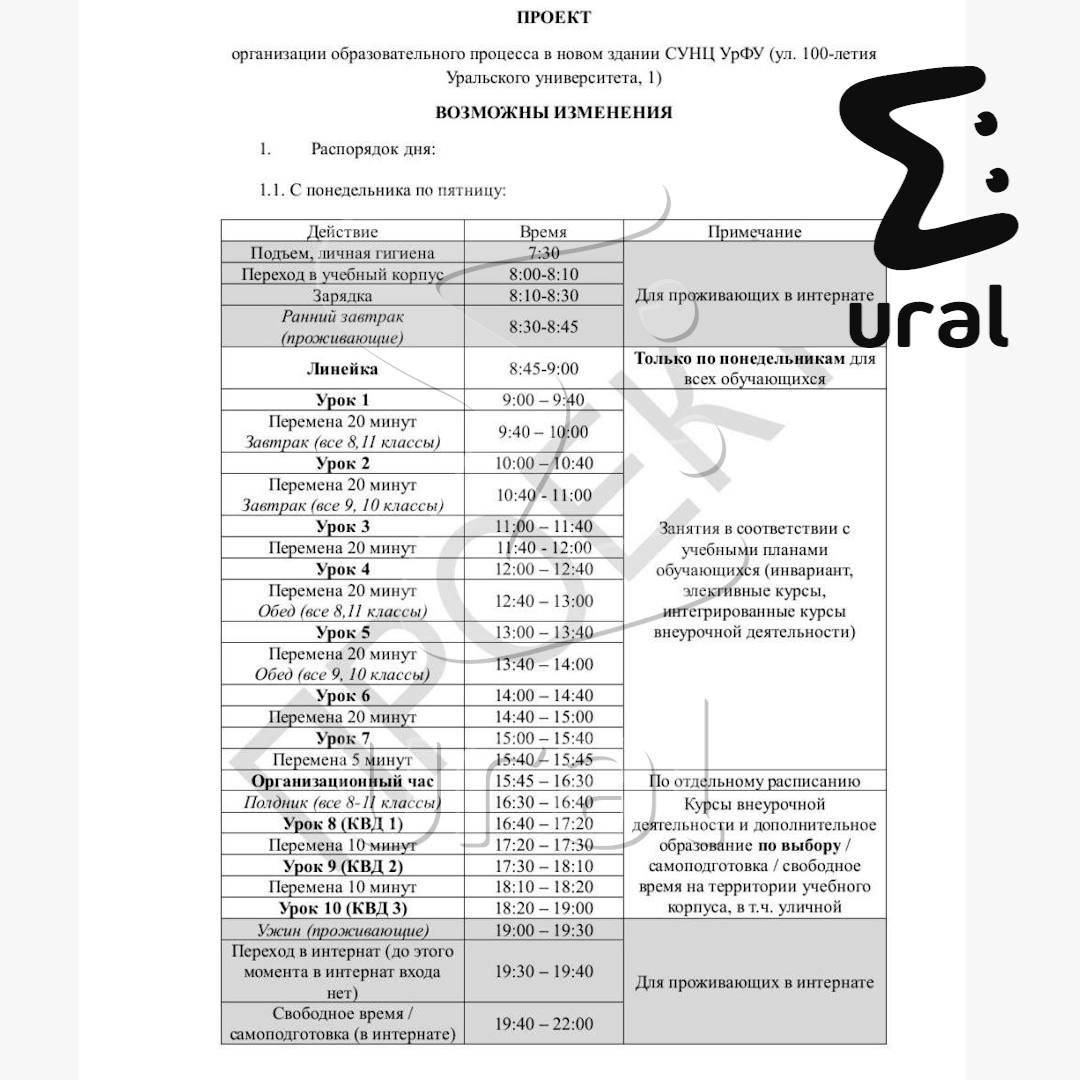 В сентябре ребят из СУНЦ УрФУ переведут из Кировского района в новый корпус в Новокольцовском. Здание к тому моменту ещё даже не достроят. Ни дети, ни родители не рады. По словам школьников (тут и далее), после переезда условия станут заметно жёстче: учёба с 8 до 15, затем внеучебка до 19:40. Тем, кто живёт в интернате, запретят уходить из кампуса без заявления. Ученики собирали комиссию и просили смягчить правила, но добились только отбоя на 30 минут позже.