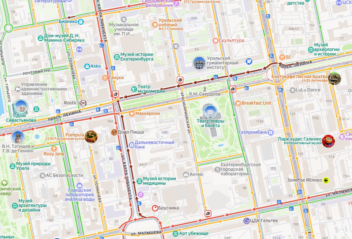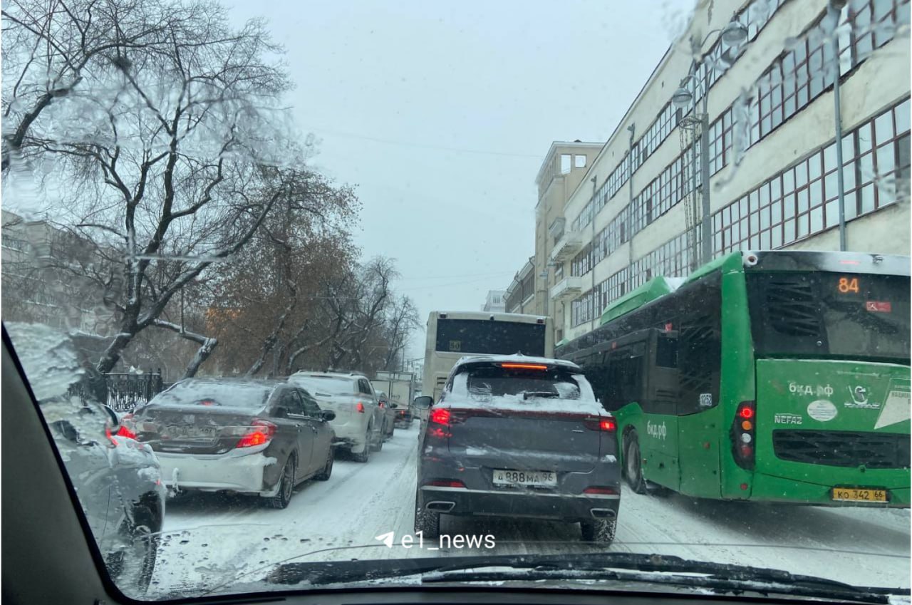 Такая обстановка сейчас в центре Екатеринбурга из-за снегопада.
