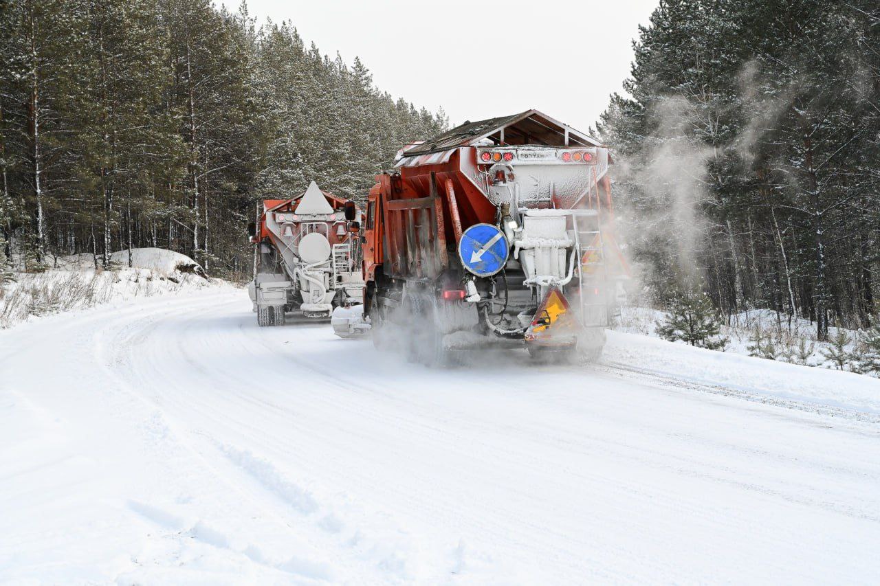 На участке М-12, проходящем по территории Свердловской области, по данным ГК «Автодор» работают 30 единиц техники, включая 18 комбинированных дорожных машин.