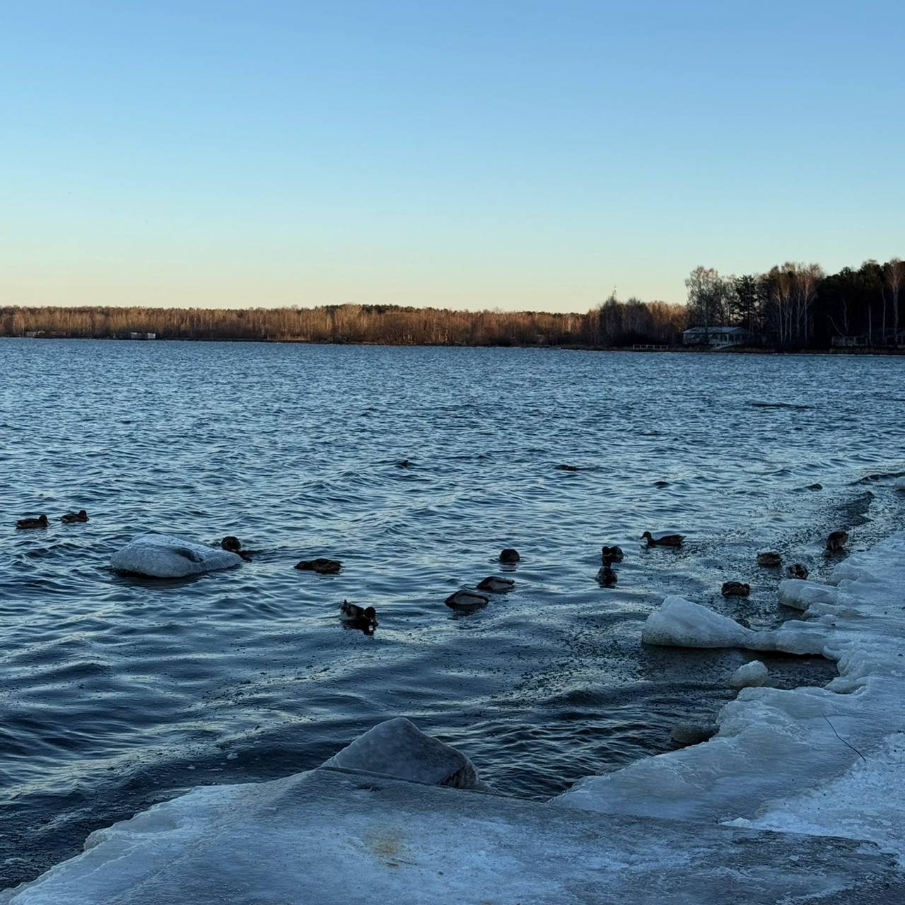 Под 59-летним мужчиной на озере проломился лёд. На помощь пришёл случайный прохожий — герой вытащил его из воды и отнёс на берег.