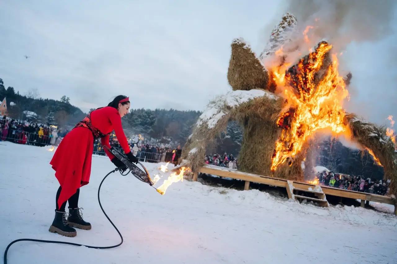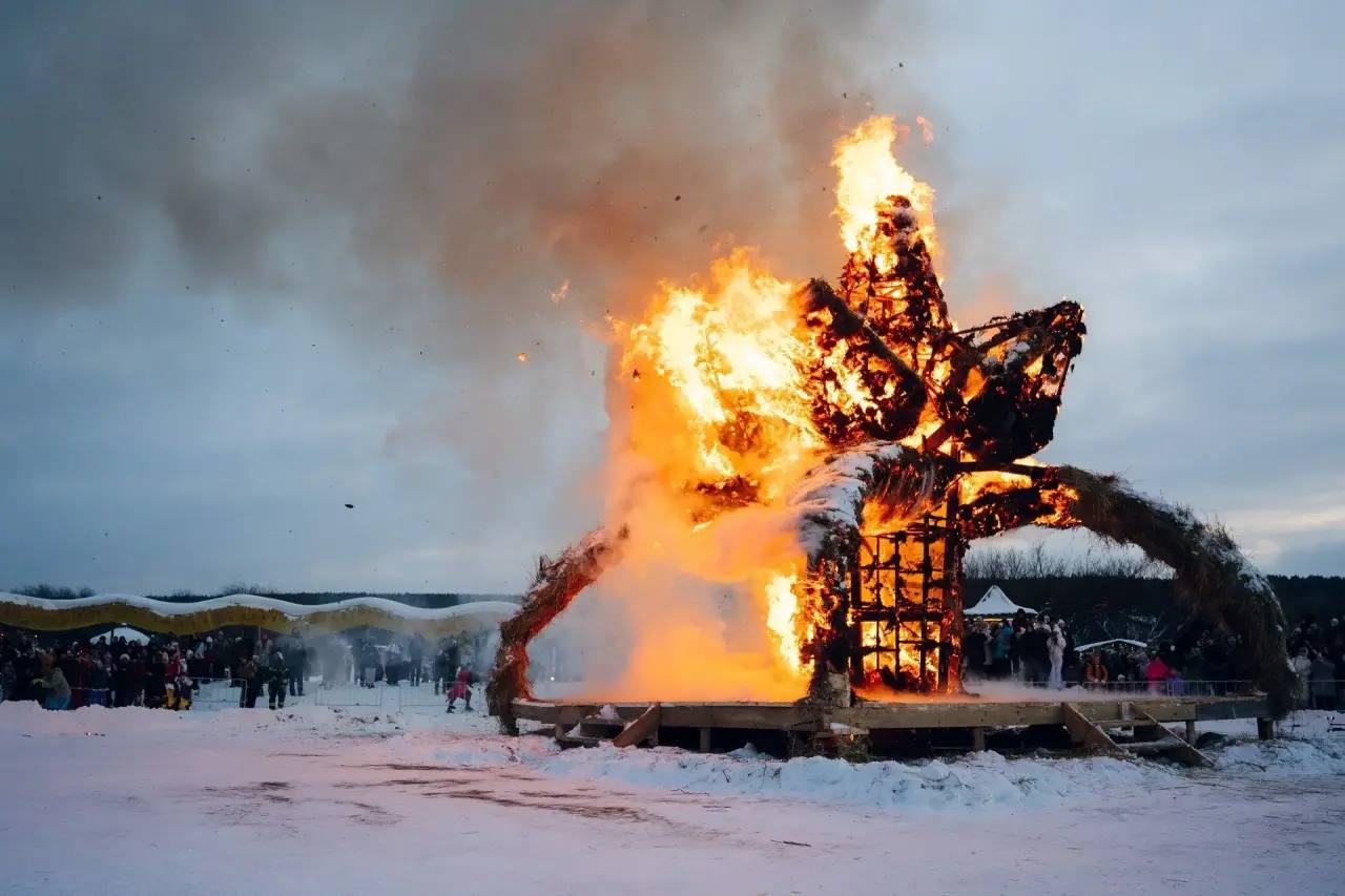 В Невьянске знакомили с историей блинов и масленичными традициями. В арамильском Парке сказов сожгли 8-метровый «Каменный цветок».