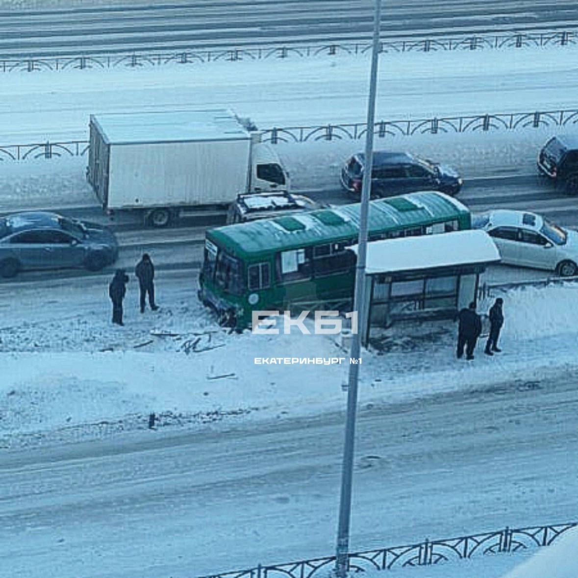 Автобус чуть не снёс остановку на выезде из Юго-Западного района