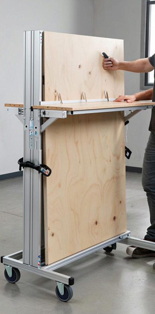 Основу такого устройства составляет прочная рама на колесах, способная принимать два основных состояния. В транспортном режиме она облегчает перемещение тяжёлых и длинных листов. После небольшой модификации она легко трансформируется в устойчивый верстак, на котором можно резать, шлифовать и сверлить материалы, значительно экономя силы и пространство.