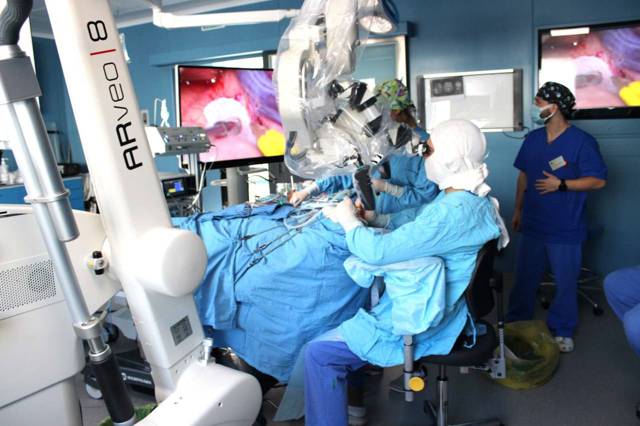 Оборудование помогает врачу максимально чётко определить границы опухоли или увидеть цветное и более контрастное изображение патологических сосудов головного мозга.