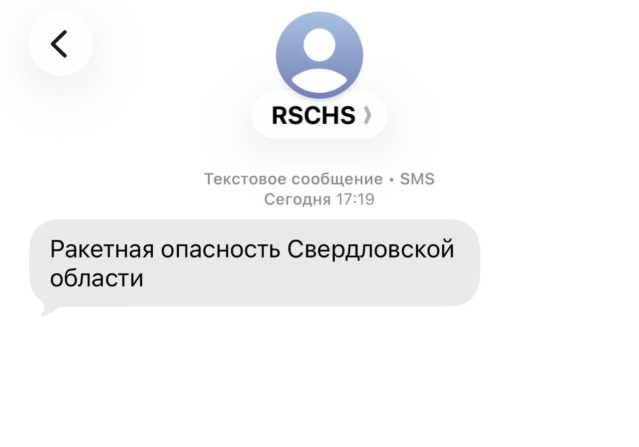 Жители Свердловской области получают сообщения, предупреждающие о введении режима «Ракетная опасность»