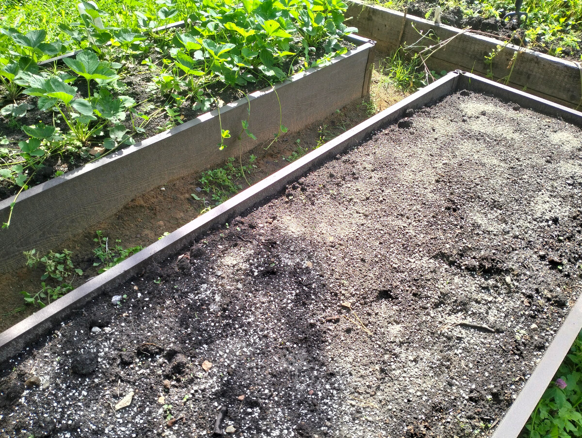 К моменту высадки земля в грядке должна быть плотно утрамбованной, иначе молодые кустики могут утонуть в рыхлом грунте. Кроме того, важно избавиться от корневищных сорняков, иначе за четыре года их корни могут заплести всю почву, что значительно затруднит рост клубники.