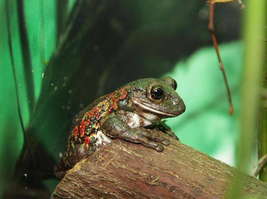 розовый какаду Петруша; краснопятнистая квакша Фрина.