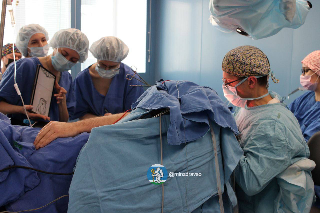 Врачи Городской клинической больницы №40 прооперировали двух пациентов через открытый доступ к мозгу, «разбудив» их для тестирования во время вмешательства