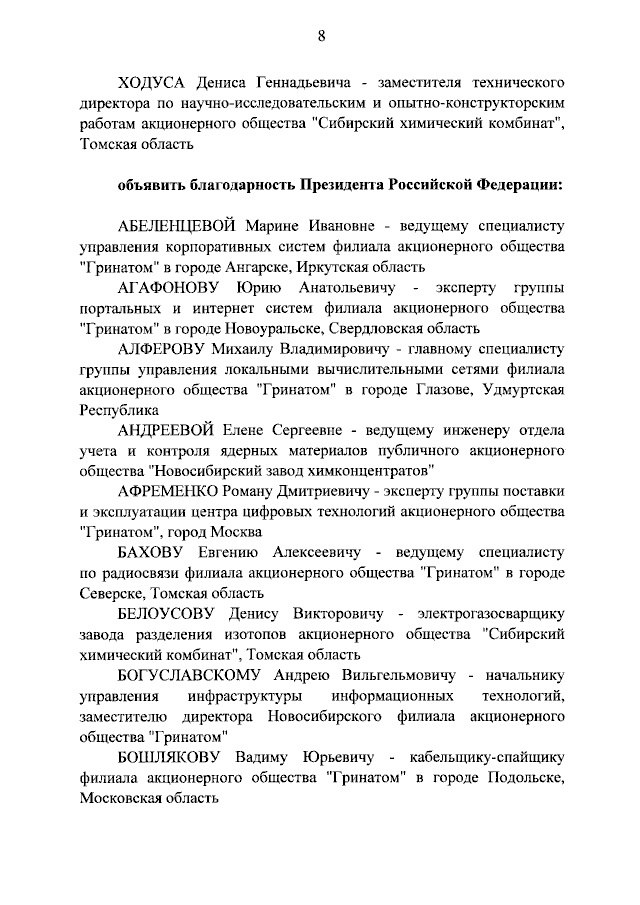 За многолетнюю успешную работу в атомной отрасли награды Президента удостоены: