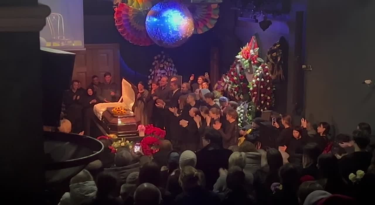 Николая Коляду выносят из Коляда-Театра под аплодисменты тысяч уральцев, которые пришли проститься с драматургом. В театре перед выносом гроба дали три звонка.