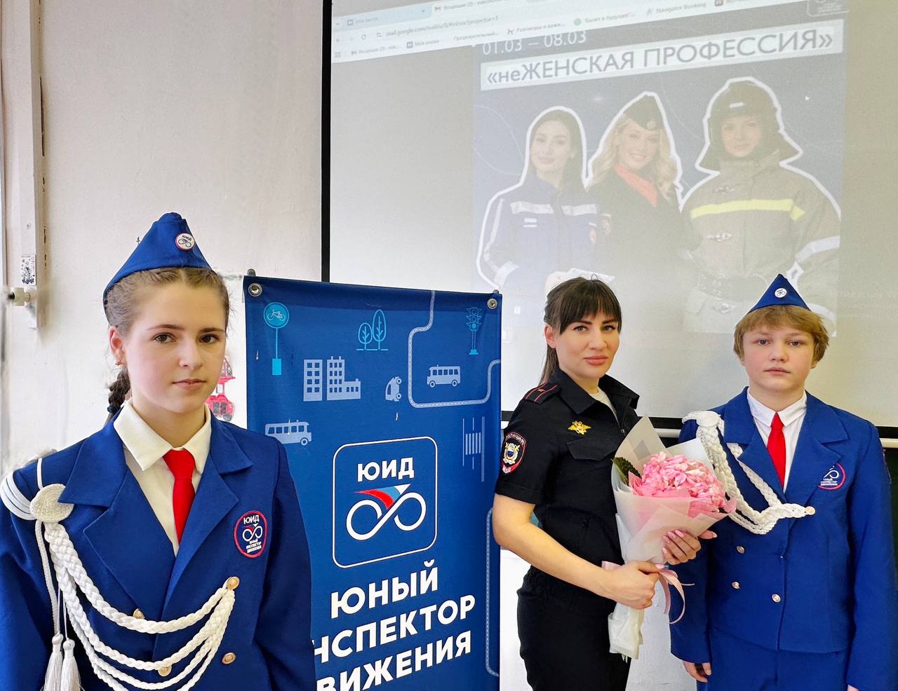 В преддверии Международного женского дня юные инспекторы движения присоединились к акции «неЖенская профессия». Ребята поздравляли женщин, которые служат, работают, помогают людям и каждый день доказывают своим примером, что профессионализм, смелость и ответственность не зависят от стереотипов