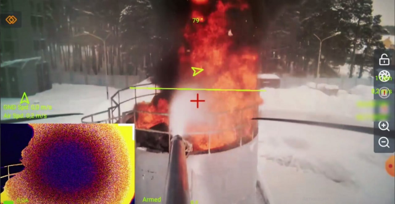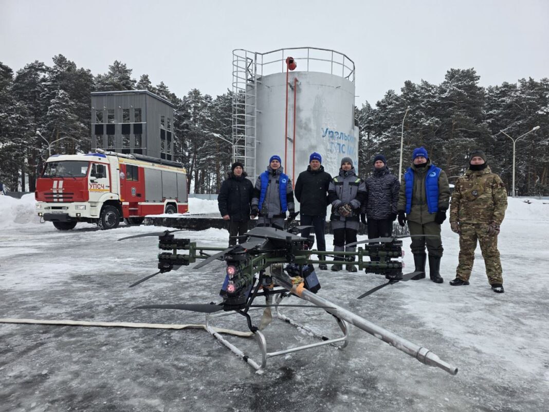 Одним из ключевых этапов стала проверка пожарного дрона «Грузовик М-500», который успешно ликвидировал смоделированное возгорание резервуара с горючей жидкостью.