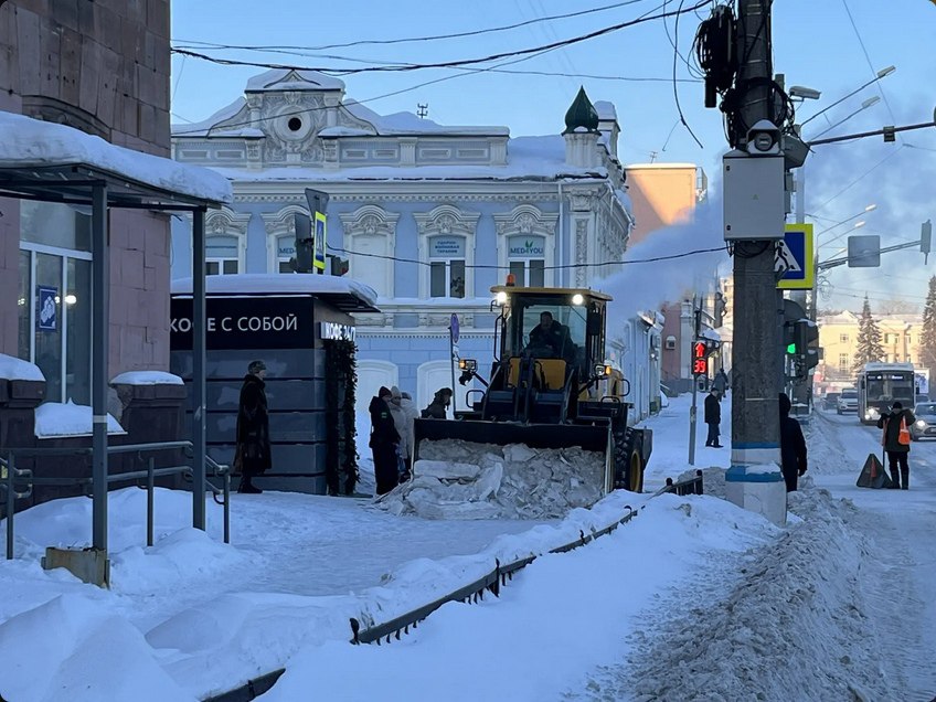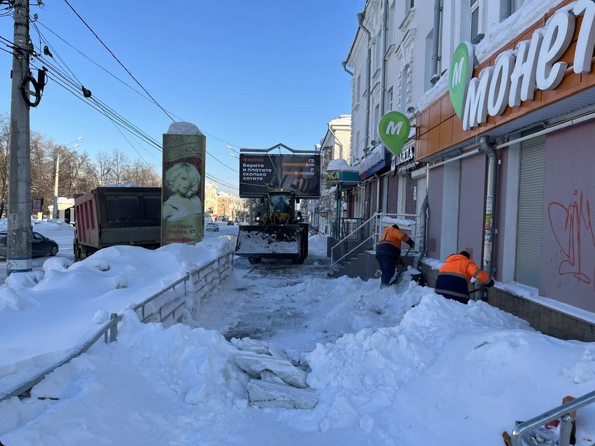 Дорожные службы продолжают ежедневную работу по уборке и вывозу снега с улиц города. Перед потеплением усилили расчистку тротуаров.