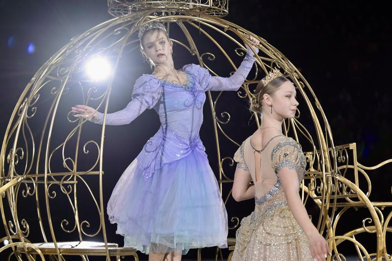 Знаменитую сказку превратили в масштабное ледовое представление, где фигурное катание соединилось с театральной драматургией, балетом и акробатикой. Главную роль Золушки исполнила серебряный призер Олимпийских игр Александра Трусова. Евгений Плющенко появился на льду в образе короля, а юного волшебника сыграл Александр Плющенко.