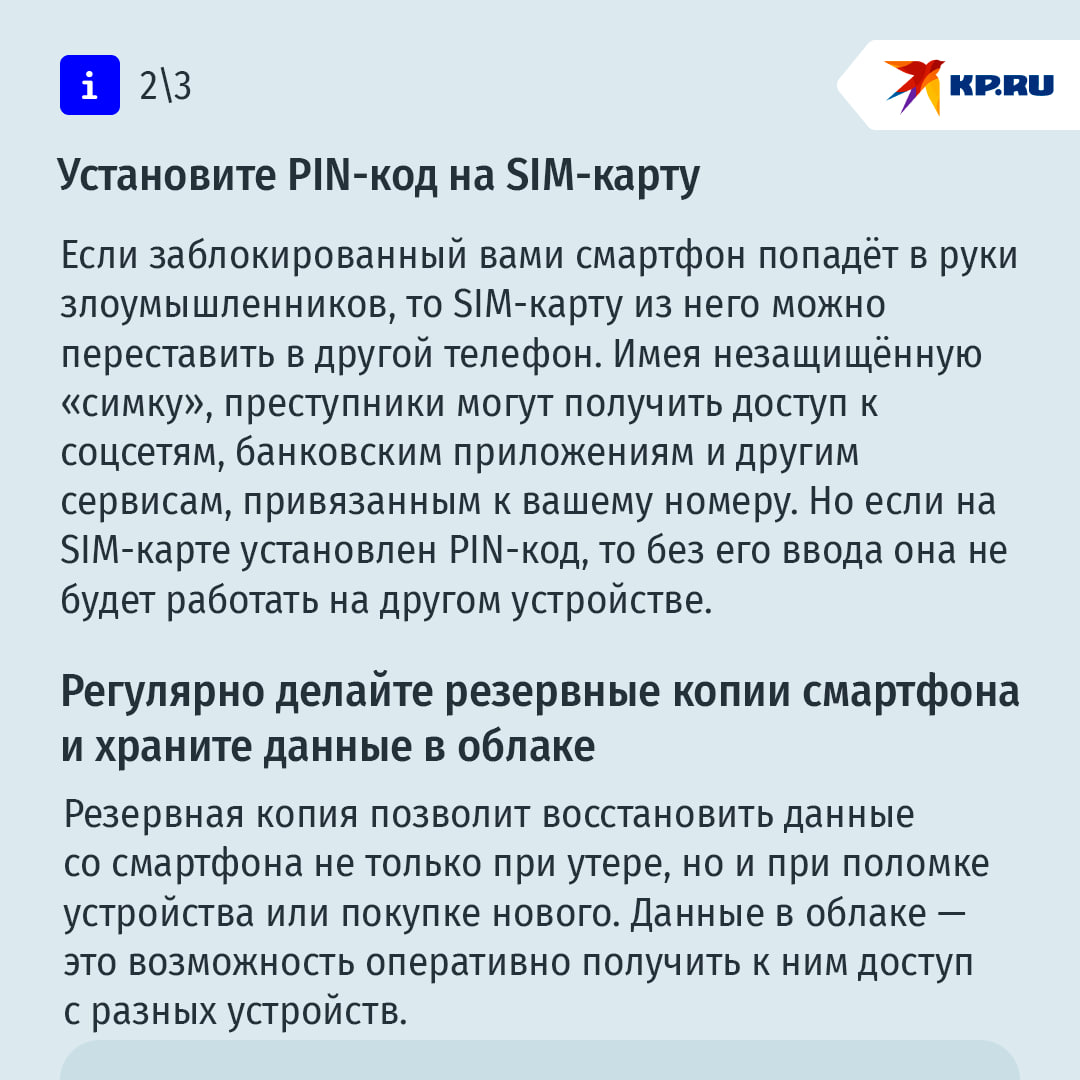 После успешной блокировки SIM-карты похититель не сможет выдать себя за вас — позвонить с вашего номера или получить SMS с кодом подтверждения для смены пароля, например, на Госуслугах.