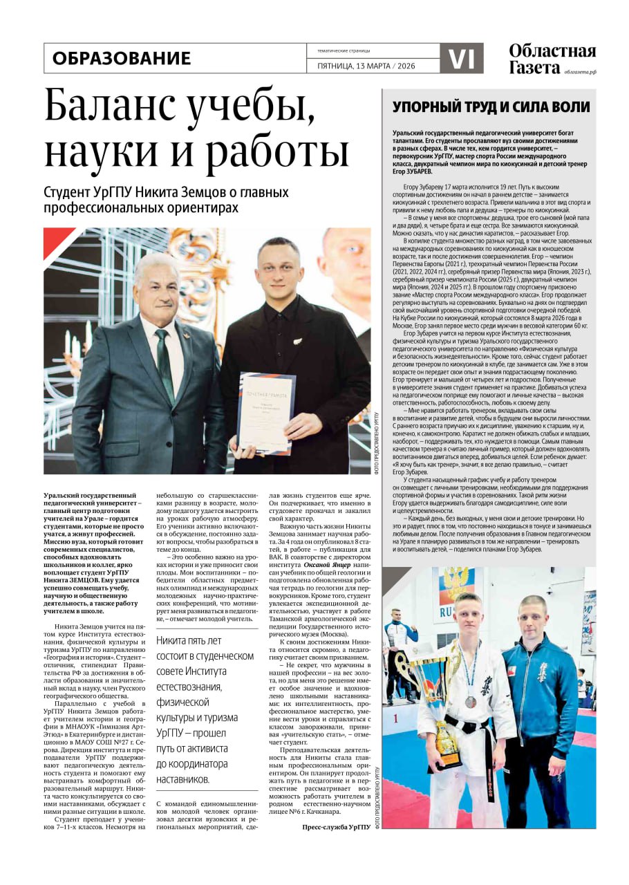Баланс учебы и работы: студент УрГПУ Никита Земцов о главных профессиональных ориентирах