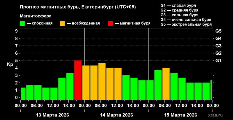 Сильные возмущения магнитного поля Земли ожидаются вечером.