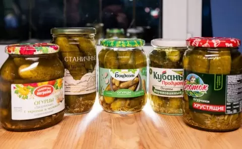 - «Кубань Продукт» — цена: 269,99 руб., масса: 680 г (огурцы - 340 г). Сладковатый вкус огурцов стал неожиданным, а прозрачный рассол не смог скрыть некоторые нюансы их качества. Дегустаторы отметили, что огурцы менее хрустящие и имеют странный привкус.