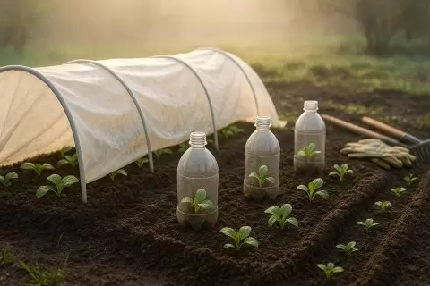 - Использование пластиковых бутылок: Отличным вариантом для защиты являются пластиковые бутылки с отрезанным дном или прозрачные контейнеры, перевернутые вверх дном. Они действуют как мини-теплички для растений.