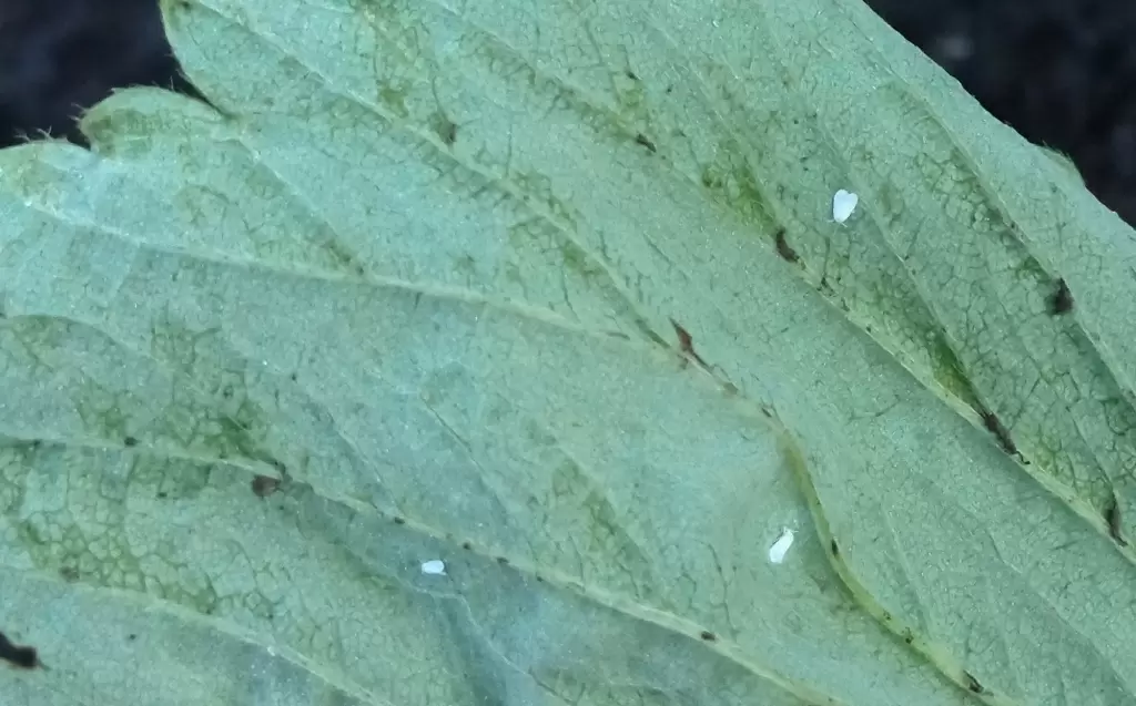 Обнаружить белокрылку бывает непросто. Мелкие мотыльки плохо заметны, но если слегка покачать инфицированные кусты, можно заметить облачко бабочек, взлетающих вверх. Кроме того, наличие белокрылки можно определить по следующим признакам: