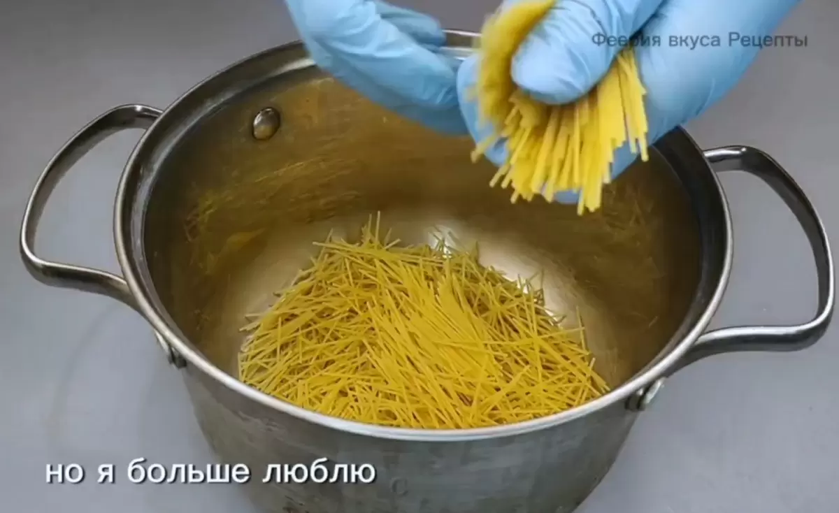 1. В небольшой кастрюле отварите лапшу до состояния "аль денте" — это займет около 15 минут, но следите, чтобы она не разварилась до кашицы. После откиньте на дуршлаг, дайте стечь лишней воде.