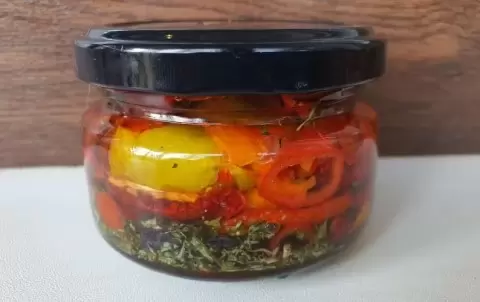 Банки и крышки стерилизуются, на дно каждой банки наливается немного масла. Затем выкладываются слоями помидоры, базилик, чеснок и специи. В завершение все заливается горячим маслом, чтобы покрыло томаты. После охлаждения банки отправляются в холодильник. Важно через неделю проверить уровень масла и при необходимости добавить еще.