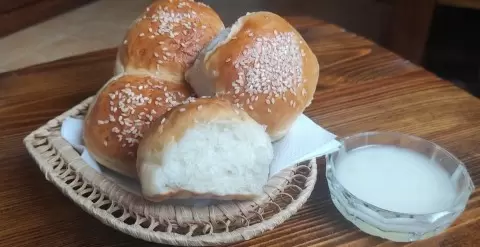 Пока пампушки выпекаются, можно заняться соусом. Чеснок следует пропустить через пресс, затем смешать с солью. Получившуюся массу тщательно перетирают, добавляя растительное масло до формирования однородной консистенции, похожей на майонез. В конце не забудьте разбавить соус холодной кипяченой водой для достижения нужной текстуры.