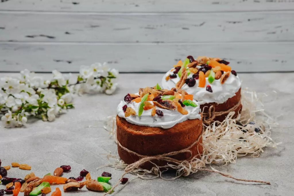 4. Выпечка: Разогрейте духовку до нужной температуры в зависимости от размера куличей и выпекайте до готовности, проверяя шпажкой.