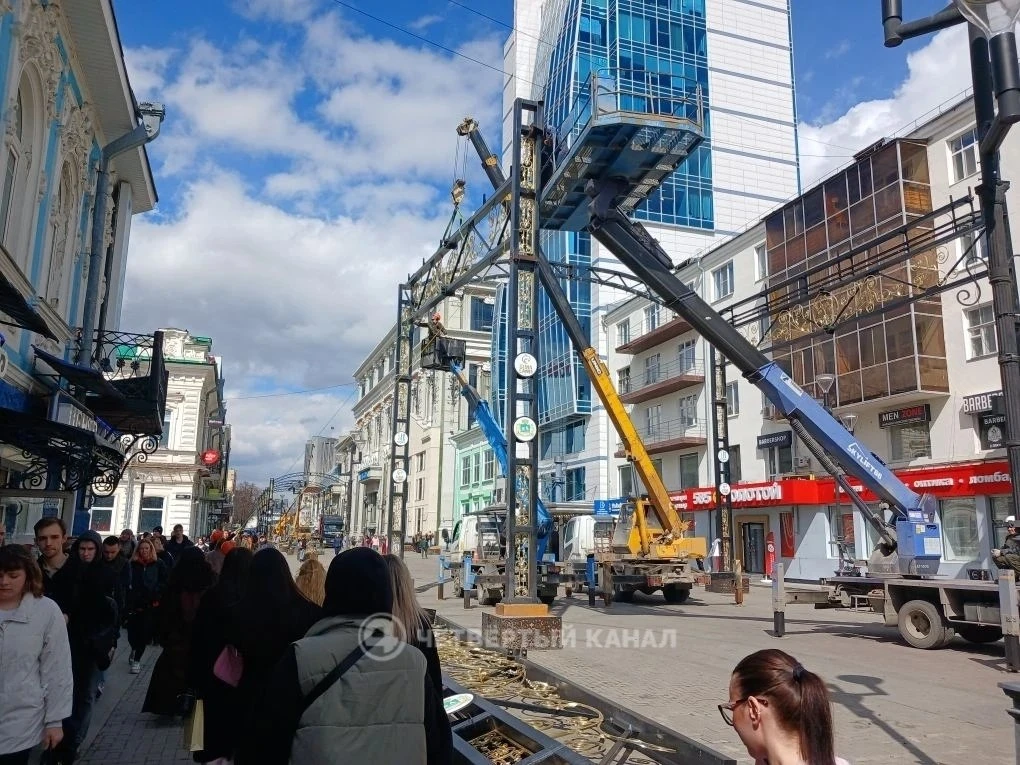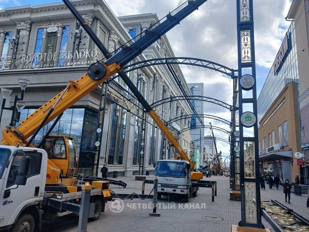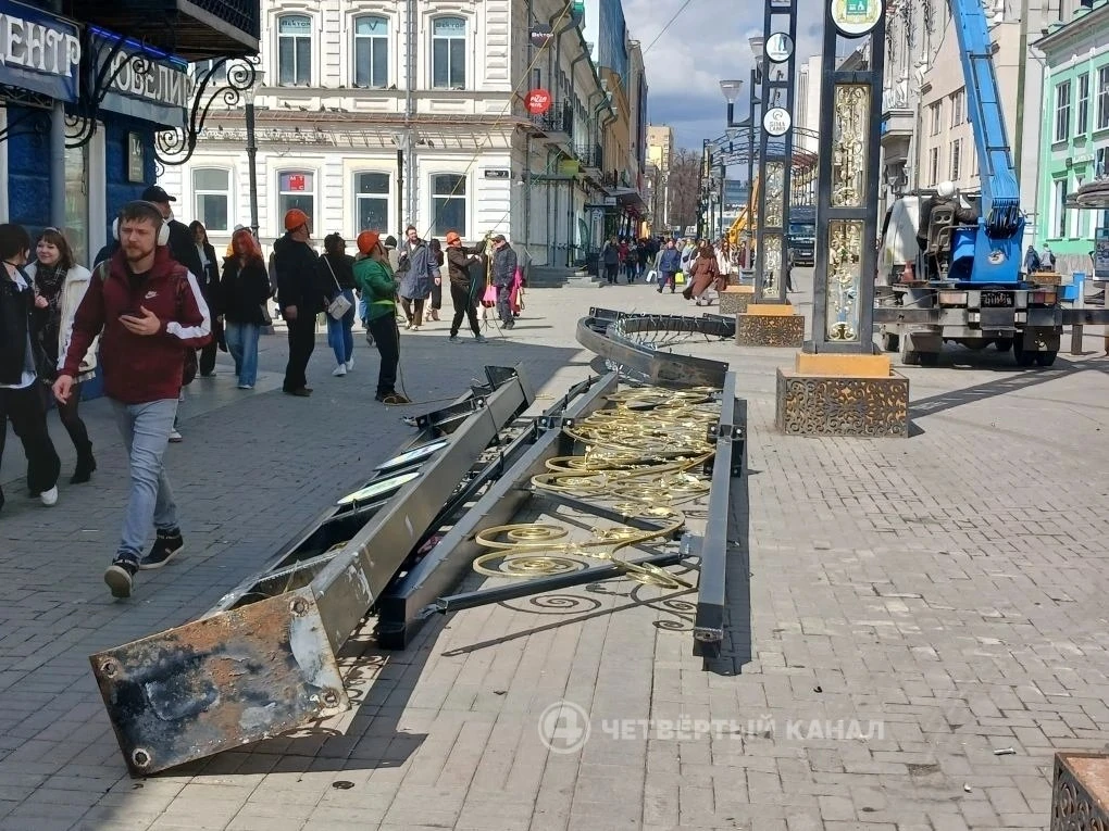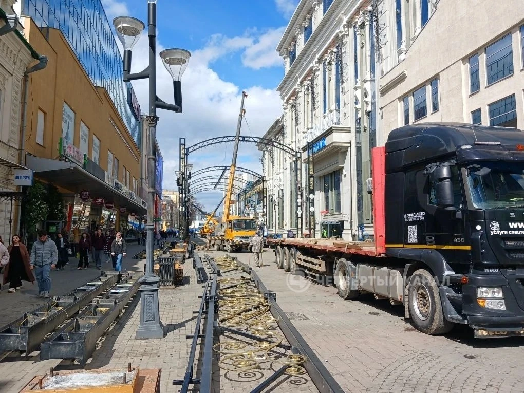 От гигантской конструкции в центре Екатеринбурга остались отдельные секции и металлический каркас. Сегодня рабочие приступили к демонтажу экрана длиной около 315 метров и высотой 11 метров, и большая часть конструкции уже убрана. Куда ее отправят дальше, пока неизвестно.