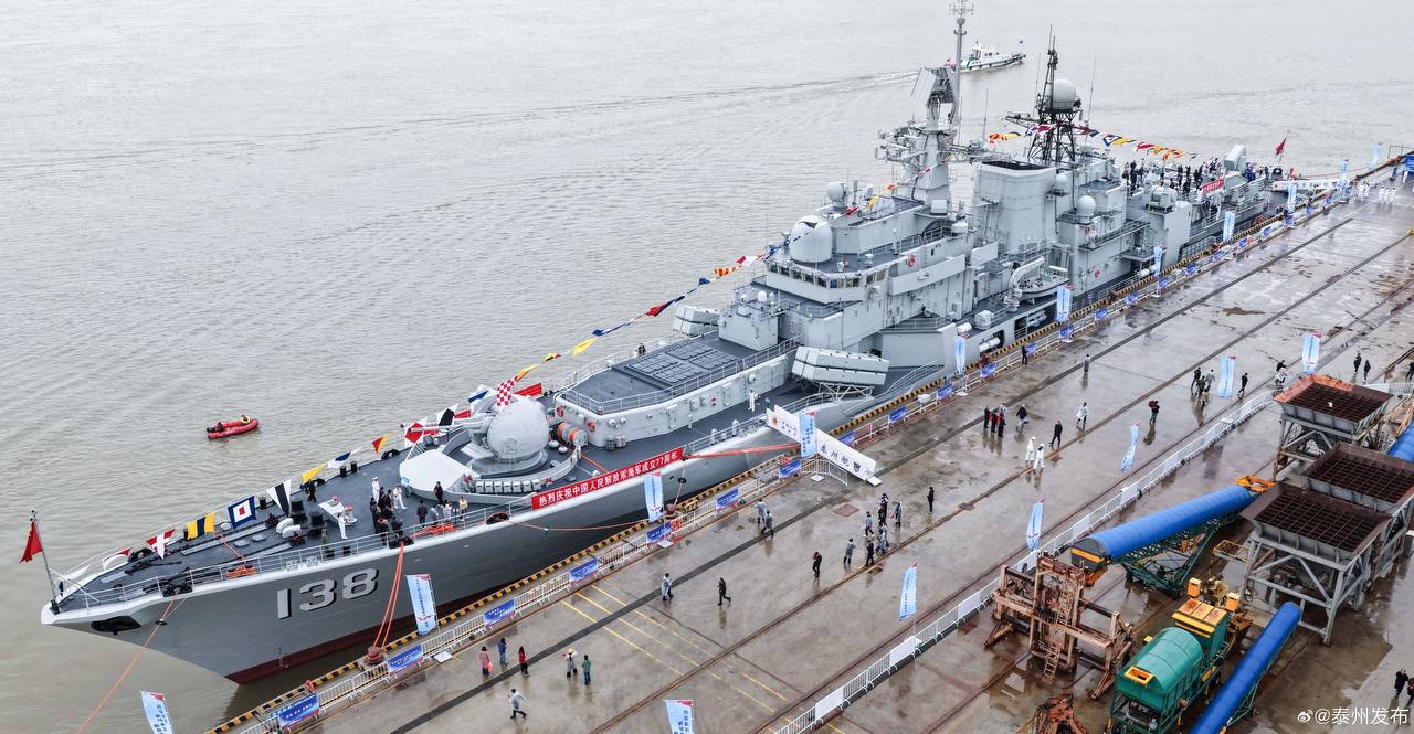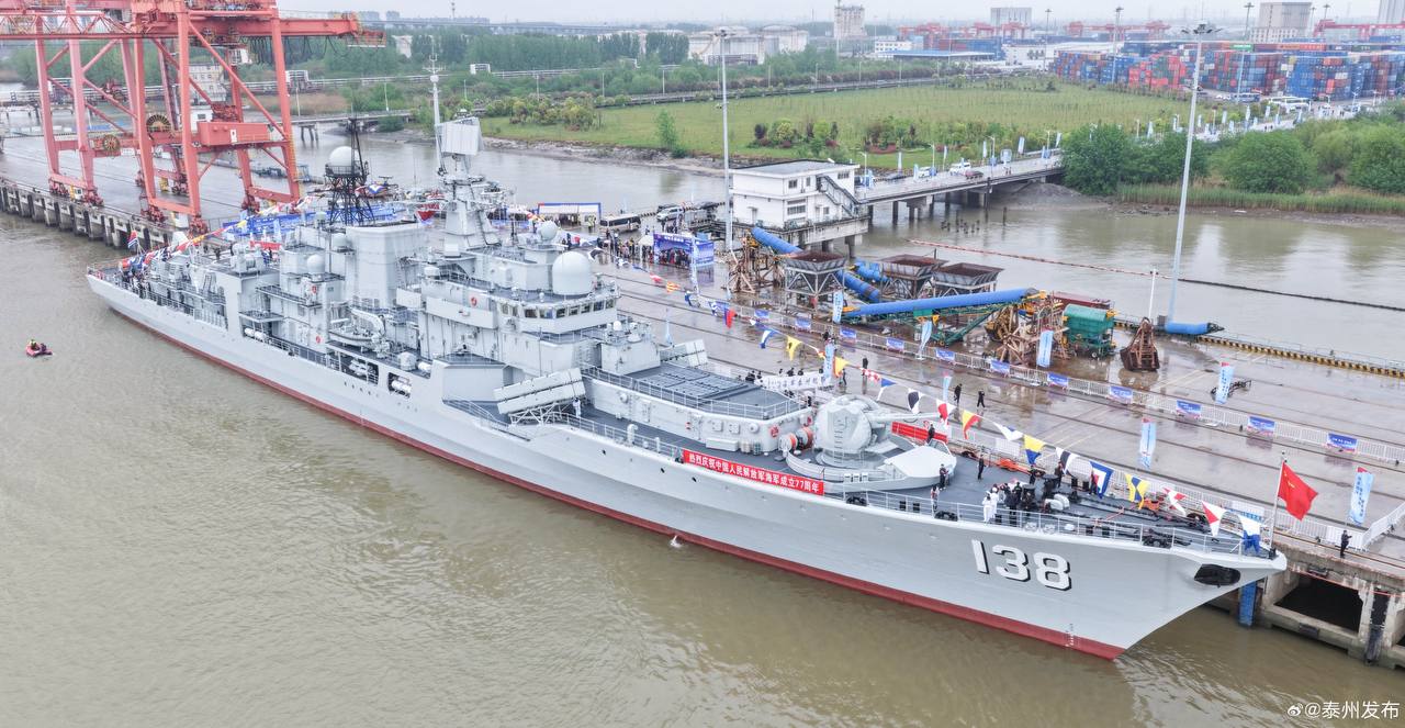 Модернизированный эсминец российского производствапроекта 956-ЭМ "Тайчжоу" (бортовой номер 138), ВМС НОАК, прошедший модернизацию на верфи Чжоушане.