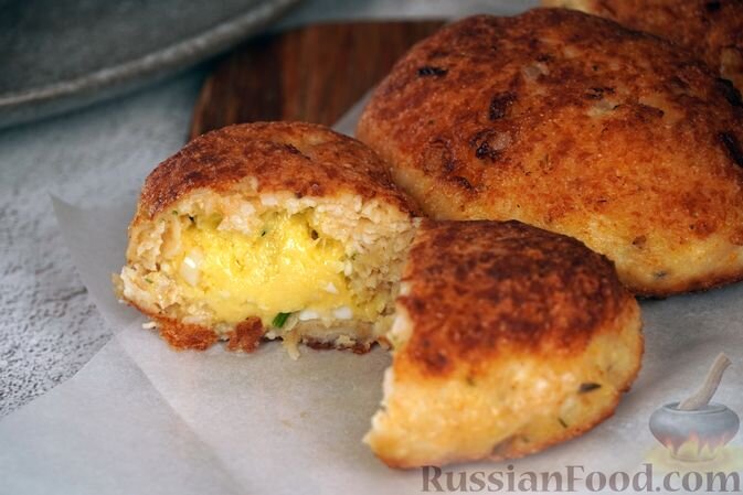 - Рисовые зразы с фаршем — этот универсальный вариант станет отличным решением для обеда, благодаря хрустящей панировке и сырной начинке.