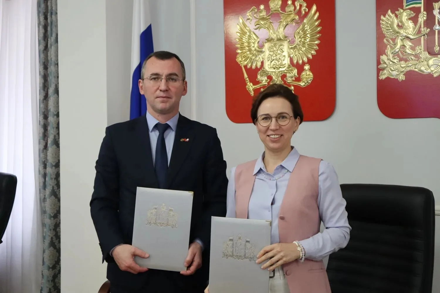 Избирательная комиссия Свердловской области заключила соглашение о сотрудничестве с филиалом государственного фонда поддержки участников специальной военной операции "Защитники Отечества" по Свердловской области. Подписали документ Илдар Якупов, руководитель филиала, и Елена Клименко, председатель комиссии.