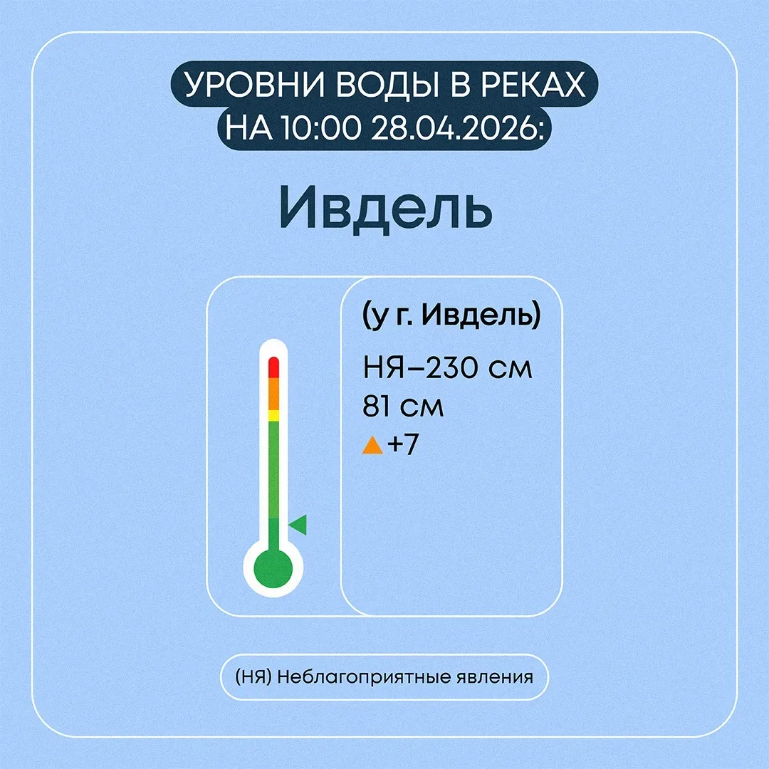 Уровень воды в р. Пышма за сутки понизился на 6 см и составляет 223 см (НЯ – 710 см). На период весеннего половодья разобран мост через р. Пышма у с. Яр, ограничено автотранспортное сообщение с д. Заречная и д. Заселина. Организована работа лодочной переправы.