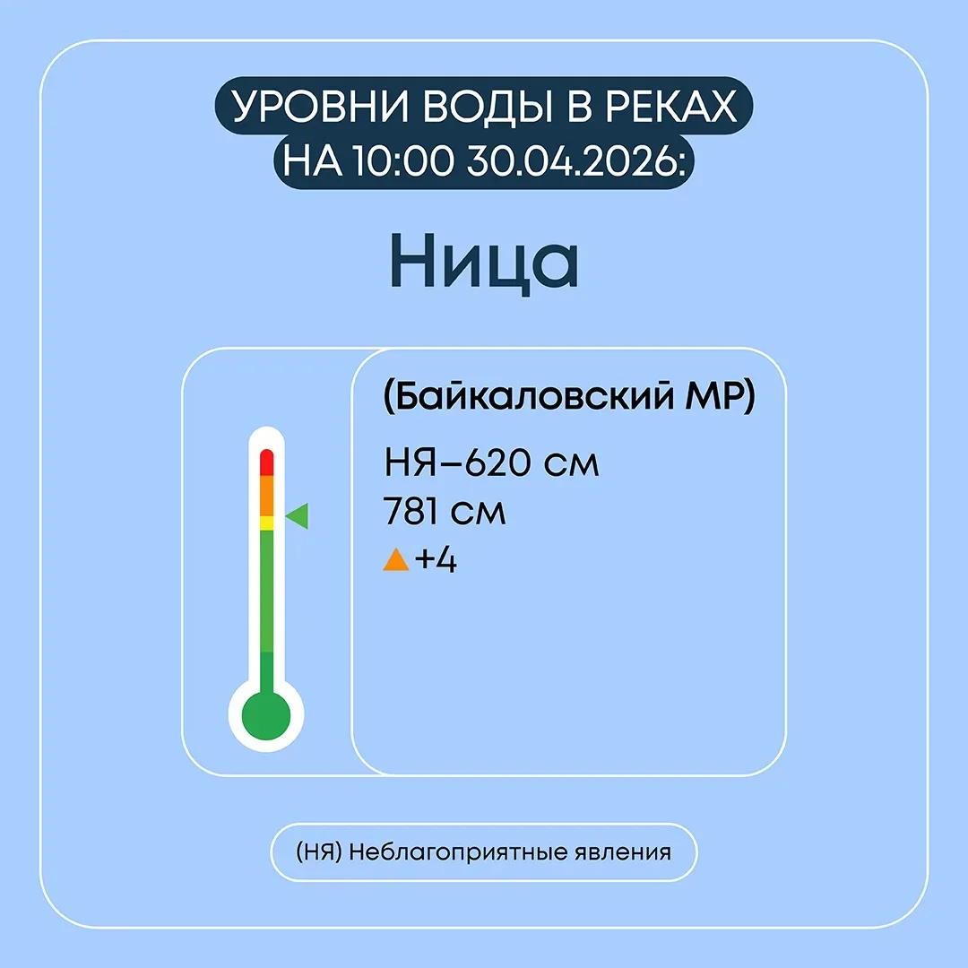 Уровень воды в р. Ница за сутки понизился на 14 см и составляет 455 см (НЯ – 620 см, ОЯ – 740 см).