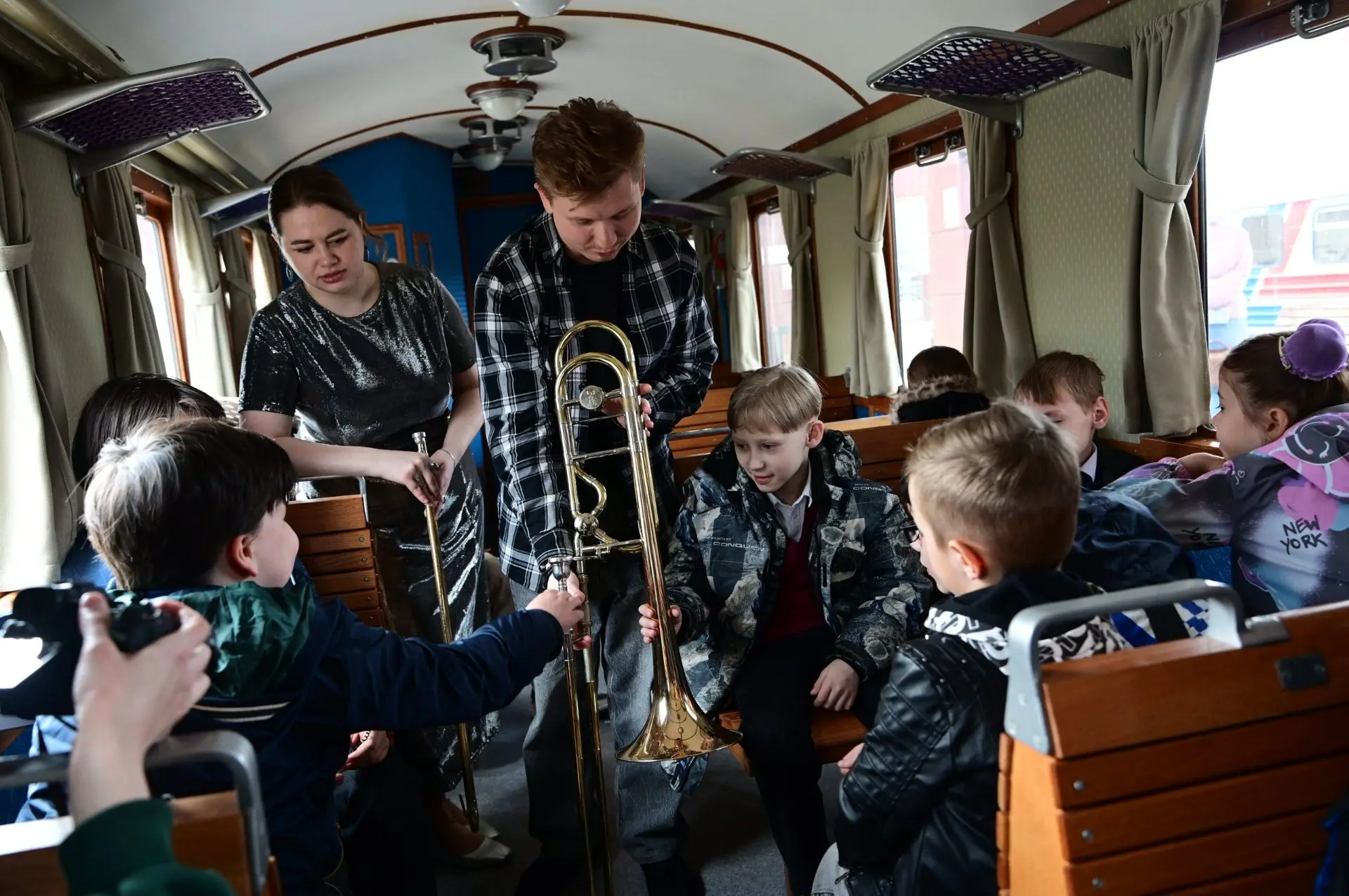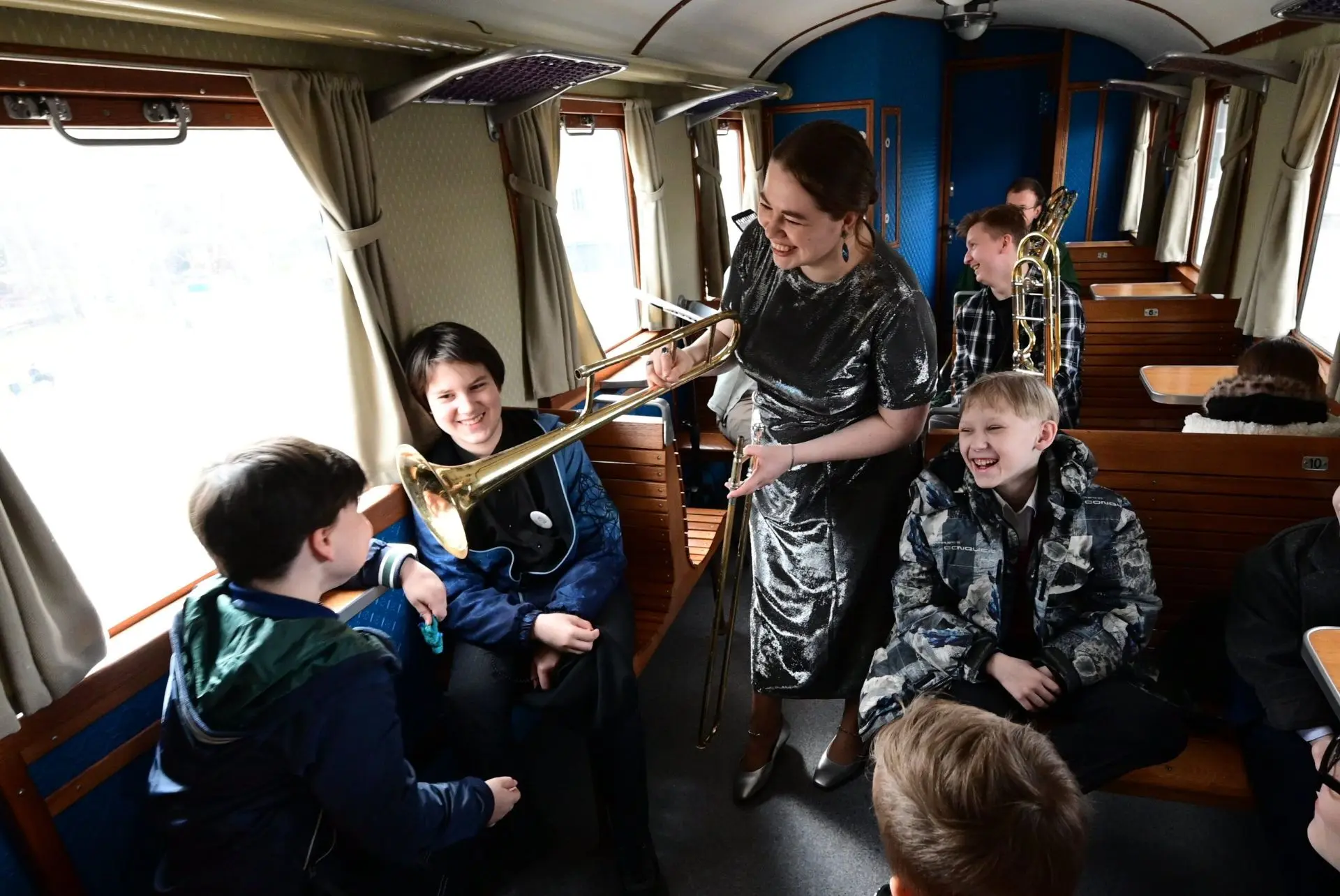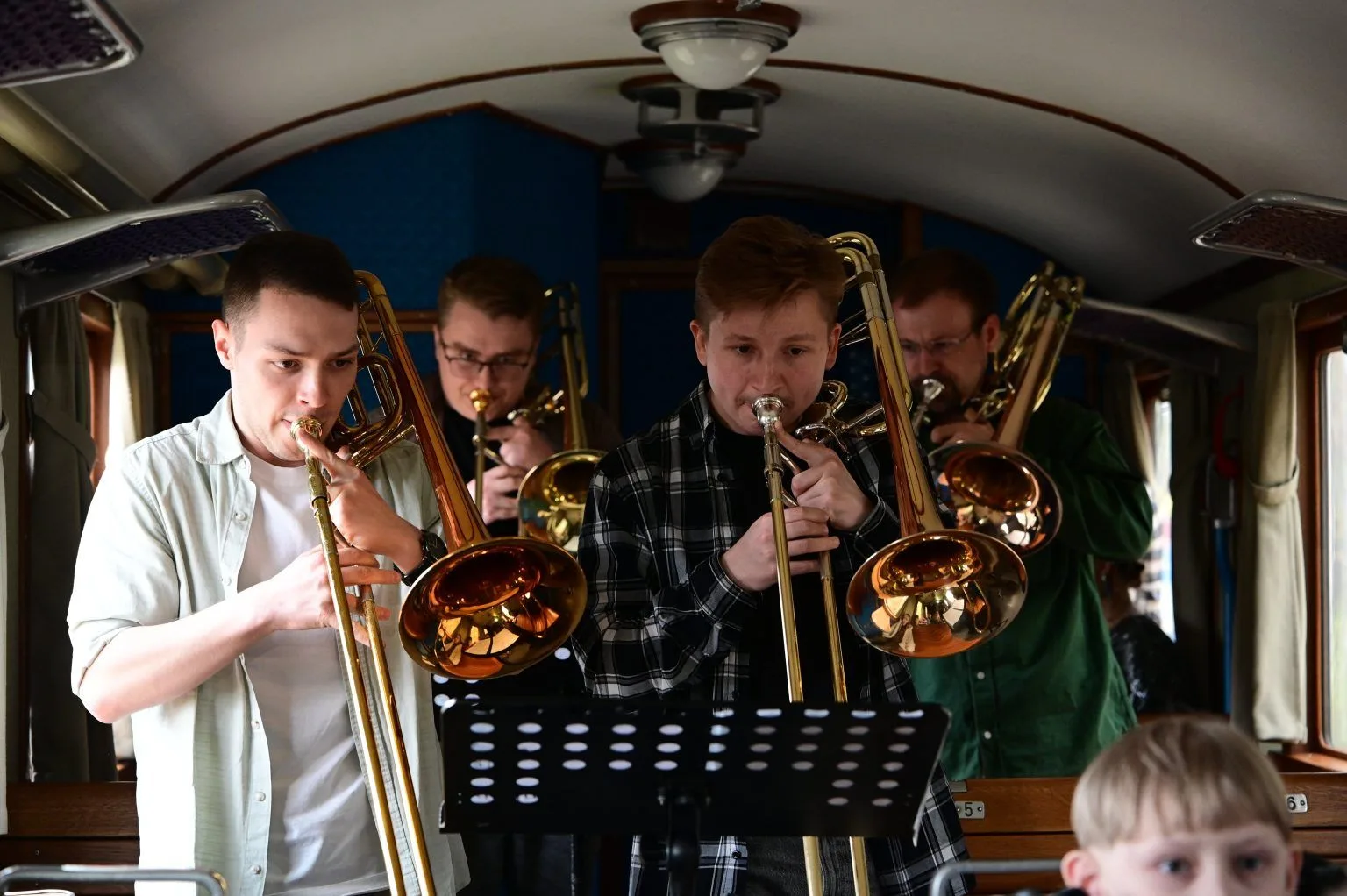 На Детской железной дороге в Парке Маяковского состоялся яркий музыкальный эксперимент: один из вагонов на время превратился в сцену и творческую мастерскую