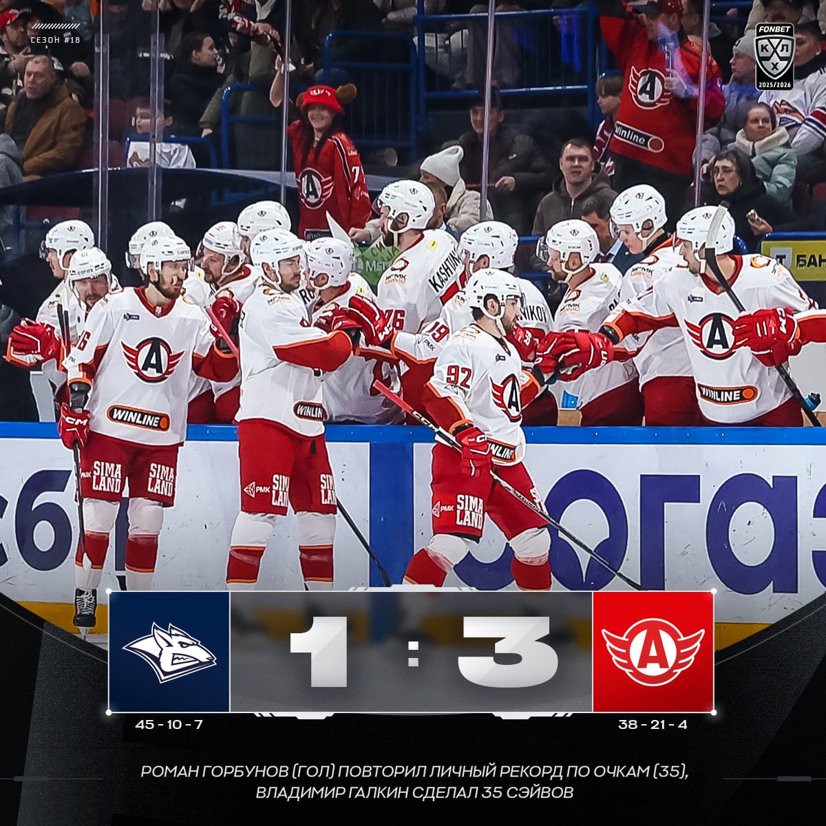 Екатеринбургский «Автомобилист» обыграл магнитогорский «Металлург» со счетом 3:1 в гостевом матче регулярного чемпионата «Фонбет» — КХЛ.