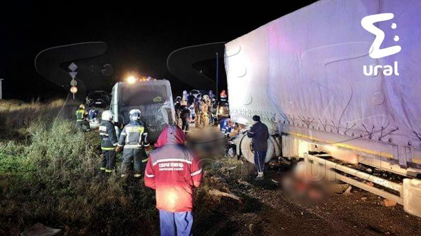 От удара людей из микроавтобуса выбросило на дорогу. Несколько пассажиров оказались под грузовиком — они погибли на месте. Предварительно, чтобы достать тела, спасателям понадобится кран.Подписывайся на Ural...