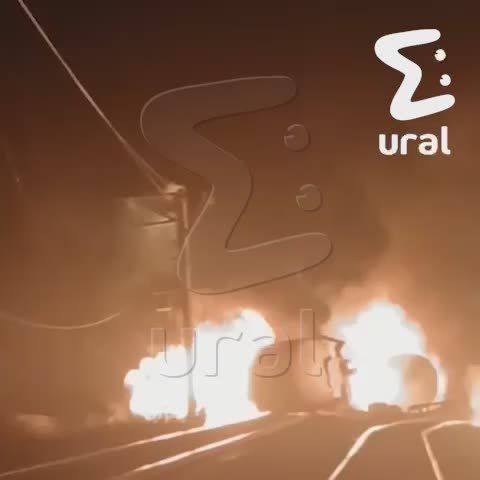 Предварительно, внутри цистерн находится мазут. На месте экстренные службы, территорию оцепили.Подписывайся на Ural Mash