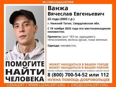 Ванжа Вячеслав (22 года) уехал из в столицу Урала 18 или 19 ноября, точная дата неизвестна. 19 ноября перестал выходить на связь, и его след потерялся.Прежде подобных ситуаций не было, молодой человек не терялся. Родственники характеризуют его как...