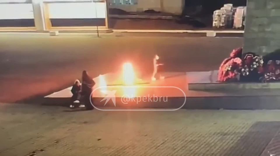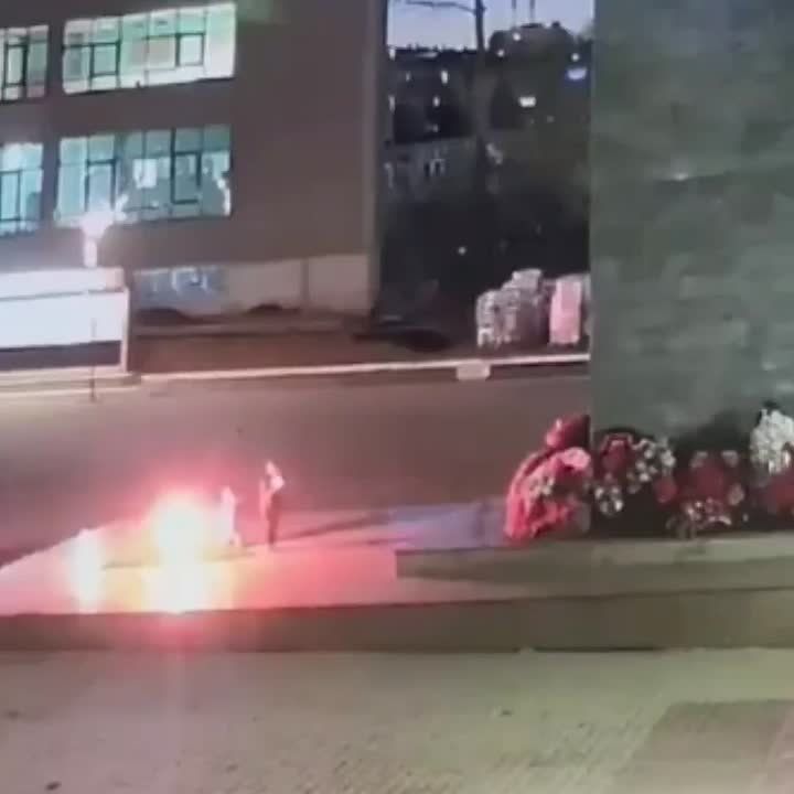 На кадрах — несовершеннолетние подходят к памятному комплексу. Через мгновение венки, лежавшие на плите мемориала, вспыхивают. Дети снимают происходящее на телефон. "Этот Мемориал расположен в самом сердце города и для всех нас является местом памяти...